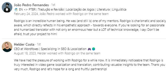 Don't be afraid, TRANSLATE!Need help with your PT-BR Loc? Count on me!I'll gladly help from translation to LQA.From complex AAA to indies full of love and heart ❤️Let's change the world one translation at a time :)